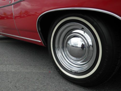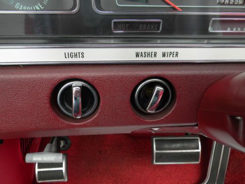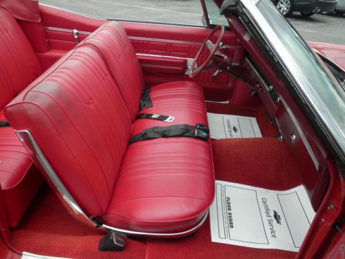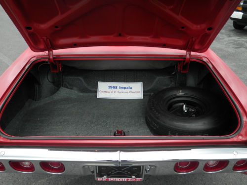 This car was very well kept at the dealership. I thought you'd like a look at this very clean 1968 Chevrolet Impala Convertible. Throughout the 1960's, the full size Impala was fast becoming the class of Chevy's car lineup and it's easy to see why. This particular convertible is painted in classic red with a red vinyl interior, and it has a white vinyl power top to make it easy for top down cruising on sunny days! It is powered by a 327 V8 engine, which only has 17,822 ALL ORIGINAL miles on it since it was from the factory. The engine compartment is dressed up nicely with freshly painted valve covers, engine block, and intake. A turbo 350 automatic transmission with the shifter on the column makes cruising a breeze. Other options include power convertible top, power steering, power brakes, vinyl interior, and radial tires. Also included with the car is the original build sheet that was placed under the back seat of the car from the factory! This Impala is sure to be a head turner anywhere you go! |