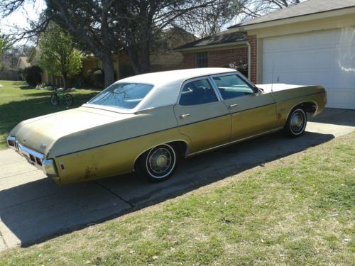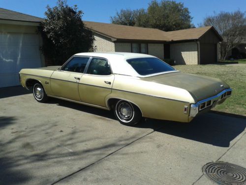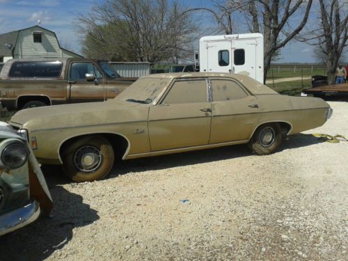 1969 Impala 4 door sedan. Has 84k original miles. Unmolested classic Chevy. Special ordered 300 HP 350 CI Turbo Fire in it. Factory interior is 9 out of 10(Very Clean and well kept for a 1969) almost perfect. Original paint has minor surface rust(shown in pics). All chrome and bright work very nice!! New brakes tires,plugs,points,dist and wires. Has been in the barn since 03 and not on the road since 1986. Clean Texas title in hand. Will need work to be a daily but everything is there and biggest part in restoring is interior and body so this car saves you the headache!!! Any questions please call Shawn at.(214)744-9758. This is a great car you wont be disappointed!!