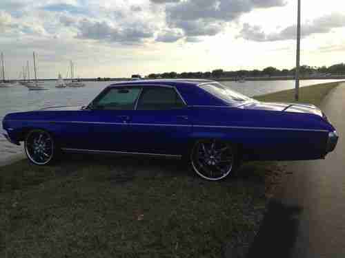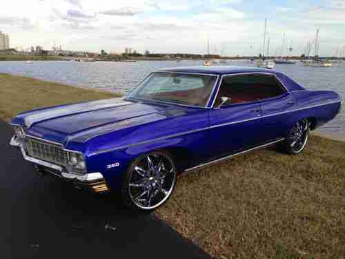 This gorgeous 1970 Chevrolet Impala has a rebuilt hi-performance 350CI motor with an automatic transmission($2500 spent on drive train rebuild). The factory A/C has been refitted to 134a and blows ice cold. Over $3000 was spent on an all Kenwood 18 speaker high/mids/subs, Amplifiers, and DVD player that sounds great. New super wet candy blue paint looks stunning($4000). All new peanut butter leather interior seats, dash, headliner, door panels with alligator leather inserts in seats and headliner($4500). New carpets and floor mats($1200). Custom painted 22" Hipnotic wheels and tires($2000). All inpections welcomed, the car is located in Tampa, FL. Call/Txt Ryan @ 352-262-3722 with any questions or to make serious offers.