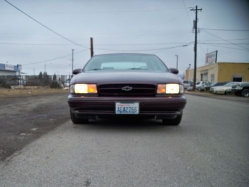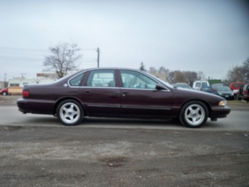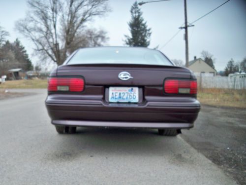 1995 CHEVORLET IMPALA SS LT-1 260 H.P. AUTOMATIC WITH OVERDRIVE ,A/C,POWER BRAKES,POWER STEERING,POWER WINDOWS,POWER DOOR LOCKS,POWER DRIVER SEAT,POWER MIRRORS,POWER ANTENNA,POWER TRUCK RELEASE,AUTOMATIC DIMMING REAR VIEW MIRROR,4 WHEEL DISC WITH ANTI-LOCK BRAKES ,VATS KEY,TILT STEERING WHEEL,LEATHER WRAPED STEERING WHEEL,AUTOMATIC HEAD LIGHT DELAY,CRUISE CONTROL,LIGHTED SUN VISORS,LUXURY LIGHT GROUP,TRUNK LIGHT,UNDER HOOD LIGHT,BUCKETS SEATS WITH FULL LENGTH CONSOLE WITH CUP HOLDERS,CARPETED FLOOR MATS,FACTORY AM/FM/CASS WITH EQ STEREO WITH PREMIUM SPEAKERS.REAR WINDOW DEFOGER,CARGO NET,FULL SIZE SPARE TIRE WITH JACK AND CARPETED COVER,GAUGE CLUSTER WITH DIGITAL SPEEDO,WATER TEMP,OIL PSI,VOLTAGE,FACTORY 17" ALUMINUM WHEELS,8.5" REAR AXLE WITH 3.42 GEAR RATIO WITH LIMITED SLIP,OWNER MANUAL,BODY COLOR REAR SPOILER,DUAL MUFFERS WITH DUAL TIPS,FRONT AND REAR ANTI-AWAY BARS,K&N COLD AIR INTAKE SYSTEM.