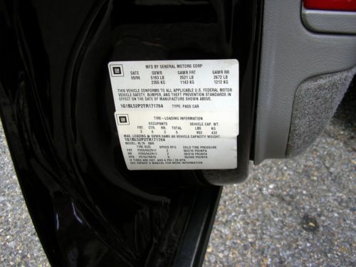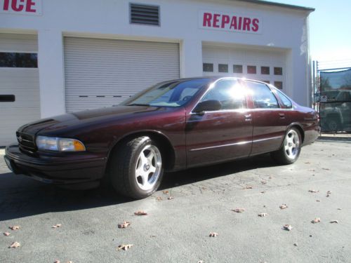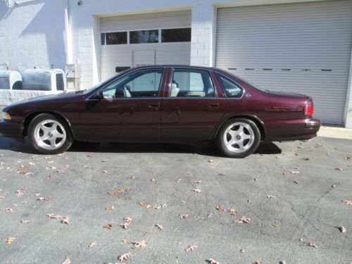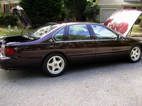 Last of Full Frame Impala SS performance sedans Formerly of Ken Ligenfelter Motor Sports Collection Two Owner Car Chevrolet LT-1 350 V-8, 260hp, 330ft pounds of torque High Capacity reverse flow cooling system FEATURES: BORLA CAT BACK EXHAUST better breathing, less restriction, better performance 3.73 RING & PINION WITH LIMITED SLIP AXLE faster acceleration EIBACH SPRINGS LOWERING KIT stiffer suspension, less "lean" in turns, better handling NITTO PERFORMANCE TIRES low profile, better more responsive handliing HYPERTECH CHIP cripser shift points, engine runs cooler, better performance, quicker acceleration NEW INFINITI HIGH OUTPUT SPEAKERS 300 watts, much better cleaner sound quality ORIGINAL WINDOW STICKER ORIGINAL OWNERS MANUAL CLEAN CARFAX PASSED STRINGENT STATE SAFETY AND EMMISSIONS INSPECTION WELL MAINTAINED IMPALA SS with maintenace records
