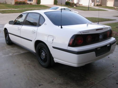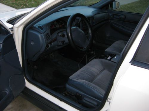 2005 Chevrolet Impala Police / Security This vehicle was purchased from North Carolina and is CLEAN. White exterior with Blue interior, it has cloth front bucket seats (Power) and vinyl rear. It has dark black tinted windows. The vehicle was used as a demo vehicle for my Radio / Public safety business and is equipped for police or security use if needed, if not the equipment will be removed. The vehicle has been maintained well, transmission rebuilt, wheel bearings, rotors and pads recently. It has Goodyear RSA tires that are over 50% If you are interested in what optional equipment is installed view the video links or just ask. http://www.youtube.com/watch?v=2_4G2yOHR60