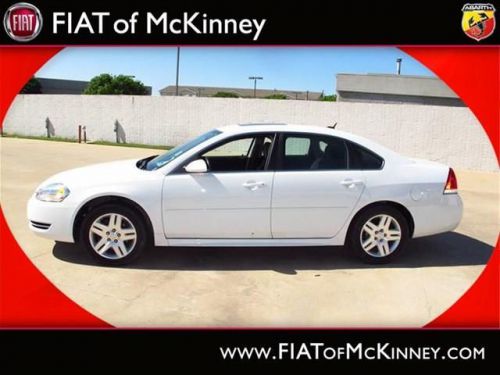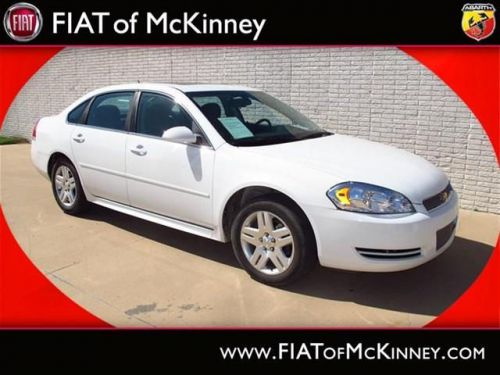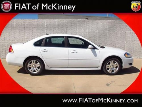 FIAT of McKinney is offering this clean and reliable 2013ChevroletImpalaLT This gas-saving Sedan will get you where you need to go* You win!! If you've been thirsting for just the right LT, then stop your search right here. This is a quality Sedan that is guaranteed to keep on chugging along for years and years. You will not be disappointed when you see this Sedan** Safety equipment includes: ABS, Traction control, Curtain airbags, Passenger Airbag, Daytime running lights...Relax in the comfort of features like: Power locks, Power windows, Auto, Air conditioning, Front air conditioning zones - Dual.... Please contact our Pre-Owned Sales Department at 888-871-9401. Large selection of new and preowned vehicles. We have access to over 2000 pre-owned vehicles so if we do not have it, we can find it for you. We also deliver to most places in Texas and Oklahoma...call us for more details!