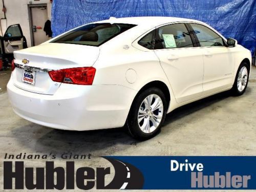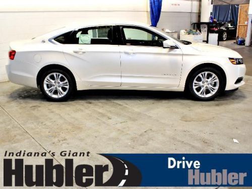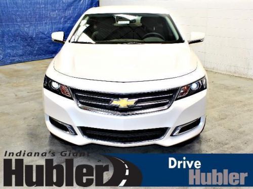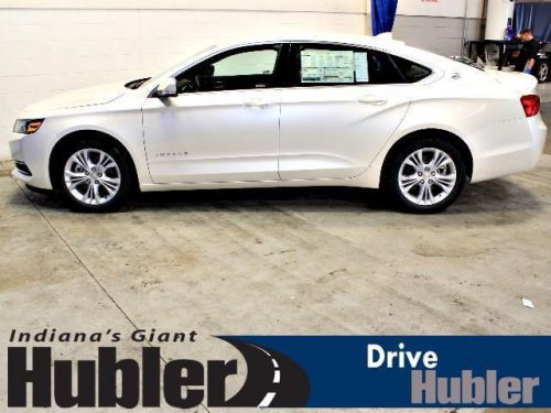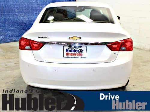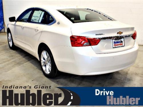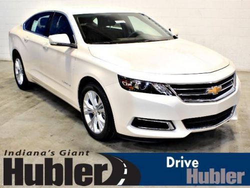 FUEL EFFICIENT 31 MPG Hwy/21 MPG City! Auxiliary Audio Input, Satellite Radio, CD Player, Multi-Zone A/C, Telematics. White Diamond Tricoat exterior and Jet Black/Brownstone sueded microfiber interior trim interior, LT trim AND MORE!======KEY FEATURES INCLUDE: Rear A/C, Satellite Radio, Auxiliary Audio Input, CD Player, Telematics, Aluminum Wheels, Multi-Zone A/C MP3 Player, Keyless Entry, Remote Trunk Release, Steering Wheel Audio Controls, Child Safety Locks. ======OPTION PACKAGES: PREMIUM SEATING PACKAGE includes (KA1) heated driver and front passenger seats, (AG2) 8-way power front passenger seat adjuster and (AP9) cargo convenience net, ADVANCED SAFETY PACKAGE includes (UEU) Forward Collision Alert, (UFG) Rear Cross-Traffic Alert, (UFL) Lane Departure Warning and (UFT) Side Blind Zone Alert, LPO, PREMIUM ALL-WEATHER FLOOR MATS, FRONT AND REAR, LPO, PREMIUM ALL-WEATHER CARGO MAT, LT PREFERRED EQUIPMENT GROUP includes Standard Equipment, REMOTE VEHICLE STARTER SYSTEM, REAR VISION CAMERA. LT with White Diamond Tricoat exterior and Jet Black/Brownstone sueded microfiber interior trim interior features a 4 Cylinder Engine with 195 HP*. ======EXPERTS ARE SAYING: KBB.com explains Impala product planners believe that their newest creation has the prerequisites to get them back in the game, and after driving the Impala extensively, we tend to agree with them.. Great Gas Mileage: 31 MPG Hwy. ======MORE ABOUT US: After more than 50 years in business, The Hubler Auto Group, through the power of ten central Indiana locations Horsepower calculations based on trim engine configuration. Fuel economy calculations based on original manufacturer data for trim engine configuration. Please confirm the accuracy of the included equipment by calling us prior to purchase. FREE Window Tint OR Unlimited 1 Year CarWash Pass with any vehicle purchase.* Central Indiana's LARGEST Chevy Dealer! We have great finance rates and rebate incentives available on our new vehicle inventory! Call us today for the details at 866-856-4211. Our Internet Customer Care Team is on-hand to take your call! *Some restrictions may apply. See dealer for details.