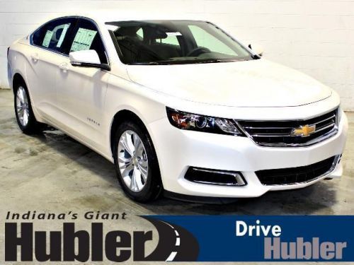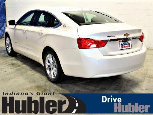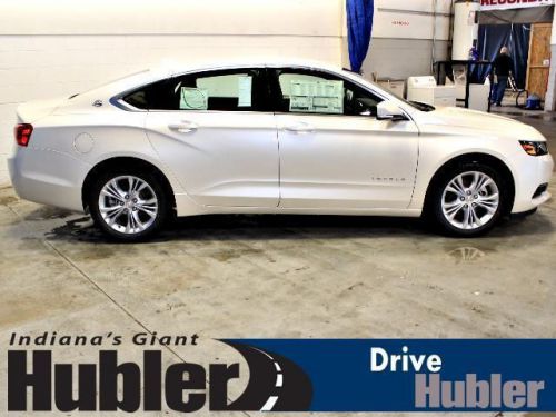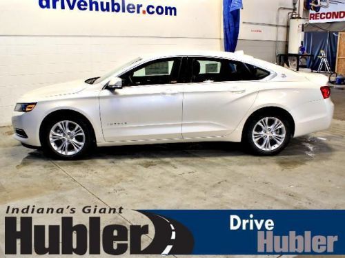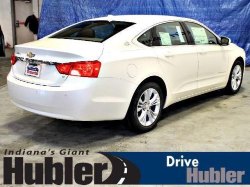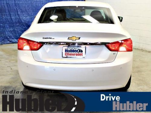 LT trim, White Diamond Tricoat exterior and Jet Black/Brownstone sueded microfiber interior trim interior. Auxiliary Audio Input, Satellite Radio, CD Player, Multi-Zone A/C, Telematics. FUEL EFFICIENT 31 MPG Hwy/21 MPG City! READ MORE!======KEY FEATURES INCLUDE: Rear A/C, Satellite Radio, Auxiliary Audio Input, CD Player, Telematics, Aluminum Wheels, Multi-Zone A/C. MP3 Player, Keyless Entry, Remote Trunk Release, Steering Wheel Audio Controls, Child Safety Locks. ======OPTION PACKAGES: PREMIUM SEATING PACKAGE includes (KA1) heated driver and front passenger seats, (AG2) 8-way power front passenger seat adjuster and (AP9) cargo convenience net, ADVANCED SAFETY PACKAGE includes (UEU) Forward Collision Alert, (UFG) Rear Cross-Traffic Alert, (UFL) Lane Departure Warning and (UFT) Side Blind Zone Alert, LPO, PREMIUM ALL-WEATHER FLOOR MATS, FRONT AND REAR, LPO, PREMIUM ALL-WEATHER CARGO MAT, LT PREFERRED EQUIPMENT GROUP includes Standard Equipment, REMOTE VEHICLE STARTER SYSTEM, REAR VISION CAMERA. LT with White Diamond Tricoat exterior and Jet Black/Brownstone sueded microfiber interior trim interior features a 4 Cylinder Engine with 195 HP*. ======EXPERTS RAVE: KBB.com explains Impala product planners believe that their newest creation has the prerequisites to get them back in the game, and after driving the Impala extensively, we tend to agree with them.. Great Gas Mileage: 31 MPG Hwy. ======WHO WE ARE: After more than 50 years in business, The Hubler Auto Group, through the power of ten central Indiana locations Horsepower calculations based on trim engine configuration. Fuel economy calculations based on original manufacturer data for trim engine configuration. Please confirm the accuracy of the included equipment by calling us prior to purchase. FREE Window Tint OR Unlimited 1 Year CarWash Pass with any vehicle purchase.* Central Indiana's LARGEST Chevy Dealer! We have great finance rates and rebate incentives available on our new vehicle inventory! Call us today for the details at 866-856-4211. Our Internet Customer Care Team is on-hand to take your call! *Some restrictions may apply. See dealer for details.