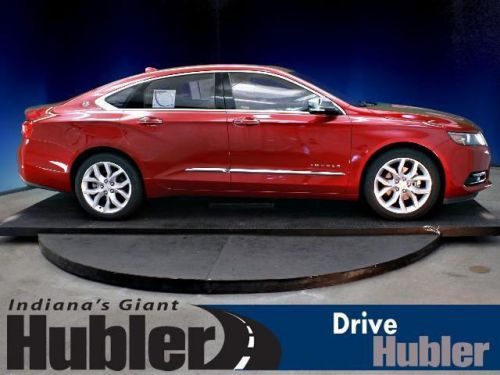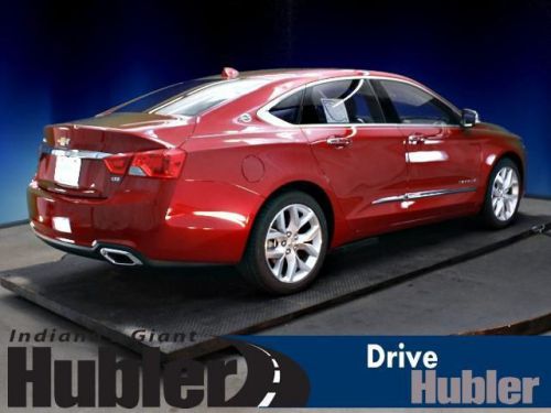 Heated Leather Seats, Auxiliary Audio Input, Satellite Radio, CD Player, Remote Engine Start, Telematics, PREMIUM AUDIO PACKAGE. LTZ trim, CRYSTAL RED TINTCOAT exterior and JET BLACK interior. EPA 31 MPG Hwy/21 MPG City! READ MORE!======KEY FEATURES INCLUDE: Leather Seats, Rear A/C, Back-Up Camera, Satellite Radio, Auxiliary Audio Input, CD Player, Telematics, Aluminum Wheels, Remote Engine Start, Multi-Zone A/C. MP3 Player, Remote Trunk Release, Keyless Entry, Steering Wheel Audio Controls, Child Safety Locks. ======OPTION PACKAGES: COMFORT AND CONVENIENCE PACKAGE includes (KU1) ventilated driver seat, (KU3) ventilated front passenger seat, (UVD) heated steering wheel, (N38) power tilt and telescoping steering column, (A45) driver seat, outside mirrors and steering wheel memory settings, (UG1) Universal Home Remote, (B58) premi, PREMIUM AUDIO PACKAGE includes (UQS) Bose premium surround sound 11-speaker system and (KI6) 120-volt power outlet, LPO, PREMIUM ALL-WEATHER FLOOR MATS, FRONT AND REAR, LTZ PREFERRED EQUIPMENT GROUP includes Standard Equipment, SUNROOF, POWER, TILT-SLIDING WITH ADDITIONAL SKYLIGHT FIXED GLASS AFT OF THE SLIDING GLASS with power sunshade. LTZ with CRYSTAL RED TINTCOAT exterior and JET BLACK interior features a 4 Cylinder Engine with 195 HP*. ======EXPERTS CONCLUDE: KBB.com's review says Impala product planners believe that their newest creation has the prerequisites to get them back in the game, and after driving the Impala extensively, we tend to agree with them.. Great Gas Mileage: 31 MPG Hwy. ======WHO WE ARE: After more than 50 years in business, The Hubler Auto Group, through the power of ten central Indiana locations Horsepower calculations based on trim engine configuration. Fuel economy calculations based on original manufacturer data for trim engine configuration. Please confirm the accuracy of the included equipment by calling us prior to purchase. FREE Window Tint OR Unlimited 1 Year CarWash Pass with any vehicle purchase.* Central Indiana's LARGEST Chevy Dealer! We have great finance rates and rebate incentives available on our new vehicle inventory! Call us today for the details at 866-856-4211. Our Internet Customer Care Team is on-hand to take your call! *Some restrictions may apply. See dealer for details.