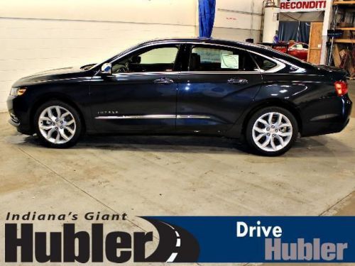 Heated Leather Seats, CD Player, Auxiliary Audio Input, Remote Engine Start, Telematics, Satellite Radio, Rear A/C. Blue Ray Metallic exterior and Jet Black leather interior trim interior, LTZ trim. EPA 31 MPG Hwy/21 MPG City! READ MORE!======KEY FEATURES INCLUDE: Leather Seats, Rear A/C, Back-Up Camera, Satellite Radio, Auxiliary Audio Input, CD Player, Telematics, Aluminum Wheels, Remote Engine Start, Multi-Zone A/C. MP3 Player, Remote Trunk Release, Keyless Entry, Steering Wheel Audio Controls, Child Safety Locks. ======OPTION PACKAGES: COMFORT AND CONVENIENCE PACKAGE includes (KU1) ventilated driver seat, (KU3) ventilated front passenger seat, (UVD) heated steering wheel, (N38) power tilt and telescoping steering column, (A45) driver seat, outside mirrors and steering wheel memory settings, (UG1) Universal Home Remote, (B58) premium carpeted front and rear floor mats, (B36) carpeted trunk mat, (DD8) auto-dimming inside rearview mirror and (DLG) outside heated power-adjustable mirrors with turn signal indicators, ground illumination and driver-side auto-dimming feature, LPO, PREMIUM ALL-WEATHER FLOOR MATS, FRONT AND REAR, LTZ PREFERRED EQUIPMENT GROUP includes Standard Equipment, SUNROOF, POWER, TILT-SLIDING WITH ADDITIONAL SKYLIGHT FIXED GLASS AFT OF THE SLIDING GLASS with power sunshade. LTZ with Blue Ray Metallic exterior and Jet Black leather interior trim interior features a 4 Cylinder Engine with 195 HP*. ======EXPERTS CONCLUDE: KBB.com explains Impala product planners believe that their newest creation has the prerequisites to get them back in the game, and after driving the Impala extensively, we tend to agree with them.. Great Gas Mileage: 31 MPG Hwy. ======BUY FROM AN AWARD WINNING DEALER: After more than 50 years in business Horsepower calculations based on trim engine configuration. Fuel economy calculations based on original manufacturer data for trim engine configuration. Please confirm the accuracy of the included equipment by calling us prior to FREE Window Tint OR Unlimited 1 Year CarWash Pass with any vehicle purchase.* Central Indiana's LARGEST Chevy Dealer! We have great finance rates and rebate incentives available on our new vehicle inventory! Call us today for the details at 866-856-4211. Our Internet Customer Care Team is on-hand to take your call! *Some restrictions may apply. See dealer for details.