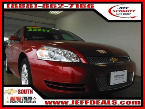 A real head turner!! CARFAX 1 owner and buyback guarantee.. If you've been longing for just the right Vehicle, then stop your search right here. This is a terrific Sedan that is guaranteed to keep on chugging along for years and years. You will not be disappointed when you see this Sedan... New Inventory! Great safety equipment to protect you on the road: ABS, Traction control, Curtain airbags, Passenger Airbag, Daytime running lights...Oh, and did you notice that it's generously equipped with: Bluetooth, Power locks, Power windows, Auto, Air conditioning. Top Dollar for Trade! See this Impala at Jeff Schmitt Chevrolet in MIAMISBURG! Email or call 888-767-2016 us to check availability OPEN 7 DAYS