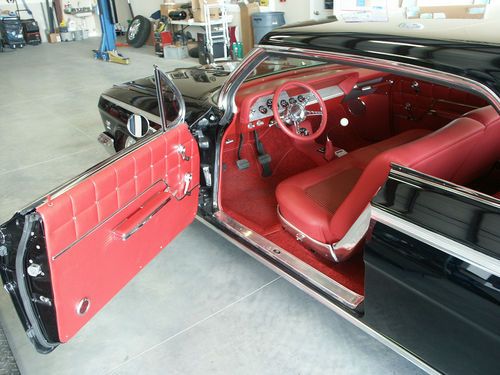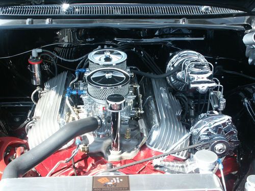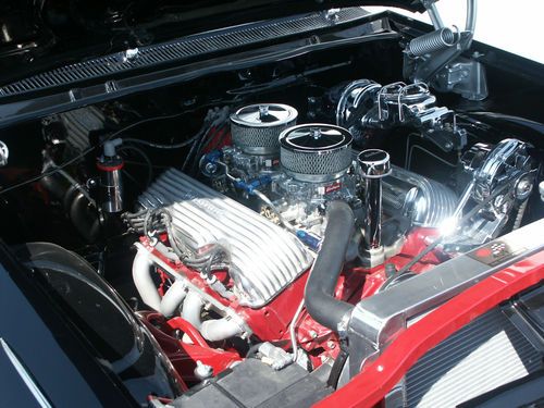 Frame-off custom restoration. Frame and the entire suspension components are powder coated. Front & rear 13 inch Baer trac-plus brakes. New Stage 2 rear-end with Eaton Posi, 9-Plus center section with 4:11 gear ratio and a 2 pc. slip style drive shaft. Wheels are Intro 18 inch Billet Rodders with 225/40ZR up front and 255/45ZR on the rear. Air Ride Technologies, Ride Pro suspension system at all four corners. The stock body is painted black with PPG paint. Motor 348 punched out to 409 with Offenhauser manifold & valve covers, dual Edelbrock 600 carbs, Super T-10 4 speed trans with Center Force clutch. Zoops billet pulley kit with Corvette powersteering pump, and a 100-amp chrome alternator. Custom polished aluminum radiator with dual electric fans. Stock-appearing interior and trunk upholstery with a custom leather touch by Ron Mangus. Killer stereo system! Email me for more pics.