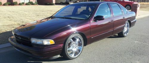 1996 Chevrolet Impala SS. Dark Cherry Metallic with 212,300 highway miles. I have owned the car since 1997 and it has been serviced regularly by the local Chevy dealer. The car has been garage kept for the majority of those years. Front seats have some tears and the power antenna does not retract. Has K& N Air filter charger and Flowmaster 50 series Exhaust. Car has aftermarket wheels and tires on it but also comes with the original factory wheels and tires. Has new water and fuel pump. Runs and drives strong, hate to part with her, we have some great memories. Must sell due to other obligations. If any questions please call (501) 529-7872. Also see my other listings for 1970 Chevrolet C10 and 1964 Ford Galaxie 500.