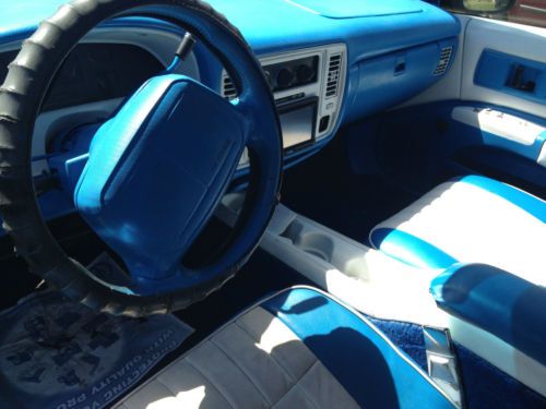 Pioneer touch screen with Bluetooth compatibility; blue and white interior with