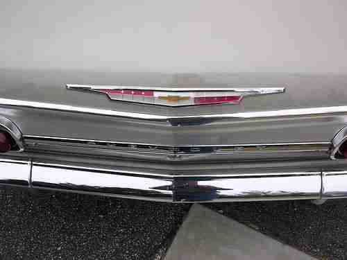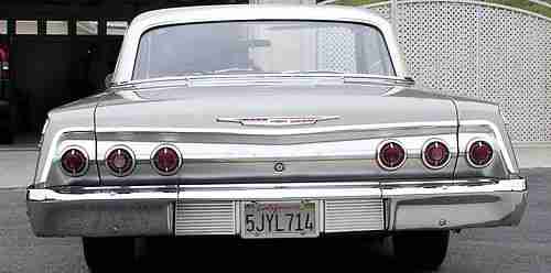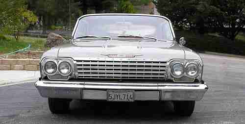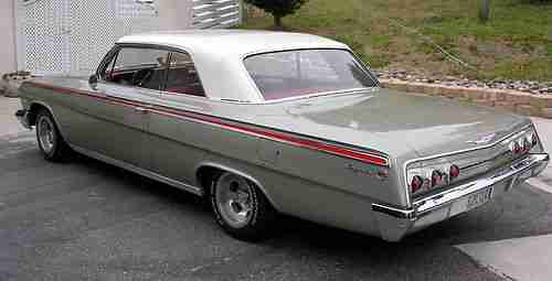 1962 Impala 2 door hardtop with factory air. I have owned this Impala for 10 years and I am second owner. No rust no wrecks. This car is very clean straight and original. Paint is in very good condition with very few flaws. A few small rock chips in front. Chrome strips, Window chrome, Glass, and bumpers are in excellent condition. Dash board even still looks new. Not repainted!!! Motor and transmission run very well and no smoke. Headliner has 3 inch cut - look close at pictures. Pictures tell it all, look close. Also air does not blow cold. Thanks bob 805-462-1553. $1,000.00 non refundable paypal deposit required at close of auction. Balance due in 7 days. If you cannot meet this requirement. please do not bid on this car. I will store inside until picked up. Pick up needs to take place either before May 15 or after May 28. Car needs to be picked up before June 15. COMES WITH STOCK WHEELS, HUBCAPS AND STEERING WHEEL. MAG WHEELS AND CUSTOM STEERING WHEEL NOT INCLUDED.