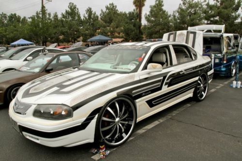 2000 CHEVY IMPALA FOR SALE FULLY CUSTOMIZED,IT HAS ALLIGATOR INTERIOR AND OSTRICH INTERIOR, 7 TVS INSIDE THE CAR INCLUDING A 20 INCH TV AS WELL, AIR BAGS SUSPENSION,24 INCH RIMS,[LEXANI RIMS] , LEXANI TIRES,K AND N INTAKE, FIBERGLASS INSIDE THE TRUNK, CUSTOM AUDIO,[KIKER]BRAND AND [PIONNER] BRAND EQUITMENT,CUSTOM BREAKS AND ROTORS AND DISC,CUSTOM PAINT, PATTERNS PAINT, WITH ALLIGATOR MARS,WATER MARS AND GHOST PATTERNS, CUSTOM GRILL BY ALL WIRED GRILLS, AWGRILS DOES GRILLS FOR CELEBRETIES LIKE THE GAME,UFC FIGHTER AND MORE,ONLY REASON IM SELLING THIS CAR IS BECAUSE I JUST HAD A DAUGHTHER , I DONT DRIVE IT NO MORE, IT STAYS GARAGED, ITS IN EXCELLENT CONDITION, SHIPPING IS AVAILABLE BUT DEPENDING ON LOCATION TO SEE HOW MUCH IT IS DEPENDING ON CARRIER, FOR MORE INFO MESSAGE ME, OR CALL OR TEXT 714-769-5900