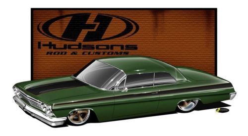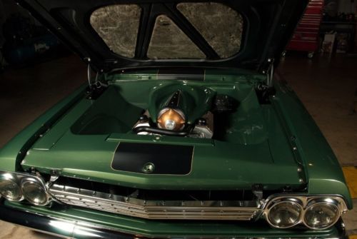For the first time up for sale is this completely custom 1962 impala built by multi award winning builders hudsons rod and customs out of strawberry plains Tennessee . This car has less than 300 miles on it since completion it started as a 27000 mile rust free car , completely fabricated engine bay and custom made air cleaner this car was built with a military theme it looks awesome , the interior is all custom with a raised floor and hand rolled metal inserts in the floor also inserts in the seats and headliner , a custom center counsel, Dakota digital dash,I did it billet tilt steering column and a 1955 custom steering wheel ,vintage air conditioning system,and the shifter is a 50 caliber bullet.the seats are made with BMW leather . The engine was a brand new 350 ho crate motor from gm, Sanderson headers , hei , and custom billet pulley setup. The car rides on an air ride technology's system . The wheels are custom painted Boyd codington junkyard dogs 20's ony back and 18' up front. The body is laser straight painted in grenade green with custom flat black stripes and copper accent stripe to match wheels, this car has only been shown a limited amount but has received all big awards. It won Goodguys columbus ohio builders choice award from Zane Cullen and Jesse greening also street rodder top 100. Also RadRods By Troy pic at Goodguys Indianapolis ,AirRide Technology's low smooth and cool pick Charlette North Carolina . It was featured on powerblock tv and was the feature car of 2011 Cruisin The Coast Biloxi Mississippi over 20,000 cars that week. Also won best of show at the 2012 Ducktail Run out of 2700 cars.the car has been featured in many GoodGuys gazette's , featured in Street Rodder magazine , featured in Super Chevy magazine, and Gage magazine. This car also was invited to sema and is invited to be on the t-shirt this year for cruisin the coast the sponsor will put you up in a hotel for the week and Vip access. This car is amazing and is ready to show and drive. I have this car for sale locally and reserve the right to end the auction at any time .