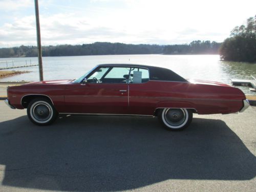 1972 IMPALA CUSTOM 2 DR RED 76000 MILES AUTO .350 ENGINE POWER STEERING POWER BRAKES.TILT WHEEL. THIS CAR RUNS AN DRIVES GREAT LIKE IT SHOULD WITH LOW MILES. REALLY NICE ORIG INTERIOR.PAINT IS A 7 ON SCALE OF10 WITH SOME BLIMISHS AN TOUCH UP SPOTS.RED WITH BLACK ORIG VINYL ROOF.CORVETTE WIRE CAPS RADIAL TIRES GREAT DRIVER.CALL 770 535 7311 WITH OFFERS OR QUESTIONS.