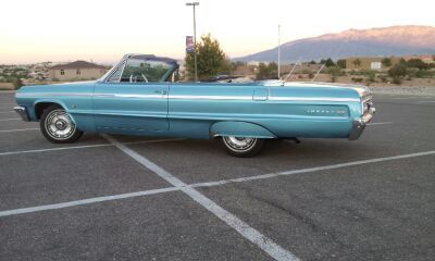 Here we have a real nice 64 Impala SS convertible with new paint glass chrome engine rebuilt runs good,dose need a liitle break work I think the brakes need to be blead. Has power steering,power brakes,power top dose go down quick but needs help going back up but all in all a 9 out 10 car gets lots of attention on the road if you have any Questions you can call me at 5058180147 thanks and good luck on wining this beauty. also have a 56 belair convertible that im going to be putting on the market as well