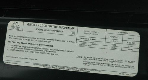 This car has only 13,426 miles!! Garage kept. . . it has never seen snow or rain. Owned by a mechanic that has compiled over $4,000 in replacement parts for this car. All parts will be included in the sale. Motor is a 350 cu in / 2 bbl carb. Automatic Transmission, pwr steering / brakes. Seats have a removable cover to preserve the original cloth seats. The owner has kept the car garaged and covered. The car has been maintained over the years with fresh oil changes, but it has not been street driven.