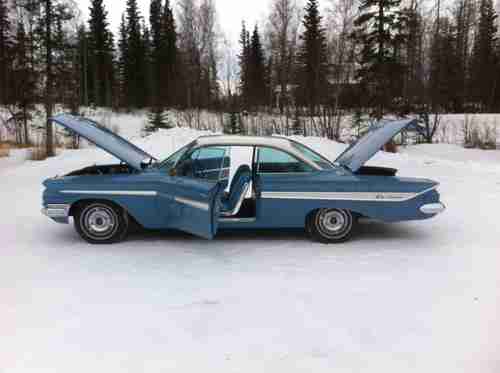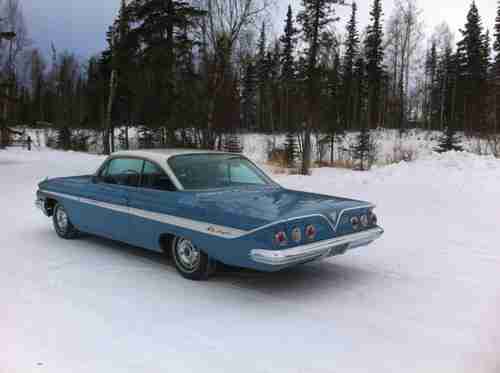 I have a original 1961 chevy Impala 8 2 sport coupe hardtop bubble top this car has been in Alaska in a temperature controlled inviroment every day since new. This sweetheart has the original 348 V8 and tri power motor, no pitting in the chrome, original hubcaps, trans has been upgraded to a turbo 350, it has had one re-paint 2 yrs ago the paint has no scratches it is flawless, the interior is also mint with no rips, My friend inherited this beauty from the original owner and it needs a new home. We also have the original build sheet This car is NOT JUNK it is a rare car and it's new owner will treasure it as much as the original owner did. Happy bidding and good luck