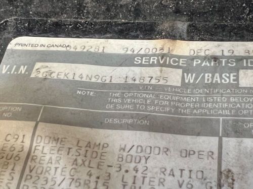 VIN (Vehicle Identification Number): 2GCEK14N9G1148755