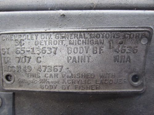 whitewall tires Frigette AC Unit blows cold (evacuated & recharged with new R134a refrigerant) There are no tears in the upholstery and the headliner is perfect. Doors and windows open and close easily. The driver side roll up window needs adjustment in the door to prevent minor sagging. This car does not exhibit ever having been in an accident. The original owners said they got bumped in the teacher’s parking lot on two occasions in the side fender panels. These events are not detectable on the body. The car is straight, the sheet metal is in great shape and the bumpers are perfect with out dents or even crooked. The engine long block has never been opened. The car received regular maintenance, starts easily and runs smoothly. The Powerglide transmission shifts appropriately and smoothly. It handles like a car built in the mid-60’s but it runs true and straight on the freeway with zero pull to left or right. With the new brake cylinders the manual brakes operate smoothly and evenly when stopping. The original 1965 Chevrolet Owner Protection Plan with the Protect-O-Plate comes with the car. The original working AM pushbutton radio is with the car and stored carefully in the truck. This automobile is a blank sheet of white paper to become whatever the 2nd titled owner desires the car to become. It is a rare find. The ’65 Malibu may be seen at the Goodguys All American Get-Together this weekend at the Alameda County Fairgrounds in Pleasanton, CA. Come to the “Cars for Sale Corral”. If the ’65 Malibu does not discover it’s new owner this weekend it will be on sale at the Goodguys 17th Colorado Nationals, June 6-8 (Friday, Saturday, Sunday), The Ranch Events Complex, 5280 Arena Circle, Loveland, CO 80538. Come to the “Cars 4 Sale Corral”. |