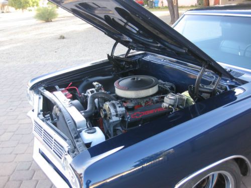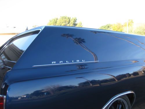 FRAME OFF RESTORATION, COMPLETE NEW SUSPENSION, FRONT AND REAR, POWDER COATED FRAME, FRONT DISC BRAKES, NEW 350 MOTOR, 700 R TRANSMISSION, NEW CUSTOM INTERIOR, INDIGO BLUE, PPG BASE COAT AND CLEAR COAT WITH SILVER SS STRIPES, 18 INCH BOSS WHEELS, BRIDGESTONE TIRES, NEW 2 1/2 INCH DUAL EXHAUST WITH MAGNAFLOW MUFFLERS. SET UP FOR VINTAGE AIR CONDITIONING SYSTEM. ODOMETER SHOWS 43,000, TRUE MILES UNKNOWN, CLEAR TITLE. I BUILT THIS CAR FROM A 1965 EL CAMINO AND A 1965 WAGON ROOF. I HAVE BEEN IN THE RESTORATION OF CUSTOM CARS HERE IN PHOENIX FOR 27 YEARS. |