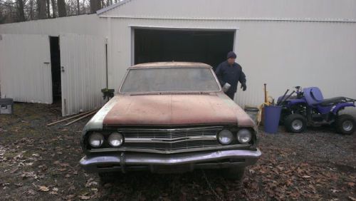 Needs quarters, trunk is not in bad shape, interior is in tacked. Have original dash board.Car has been garage kept. Front and rear seats are in decent condition. Engine is a 1968 396 BBC, not original to the car, however the car is original SS 396 Malibu. Manual 4spd Tranny. Have original dash cluster, extra parts in trunk, extra hood fenders. Door panels are not original, bucket seats. Car needs to be towed. Running Trim tag for further information, will revise this ad afterwards.