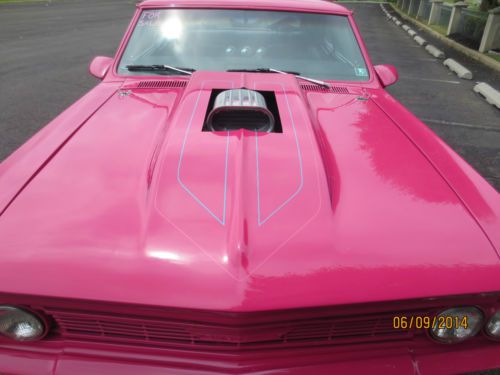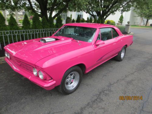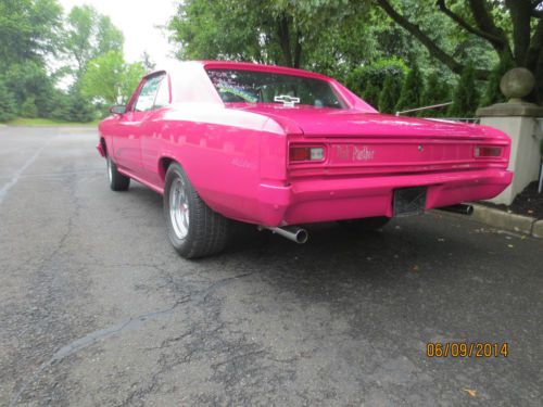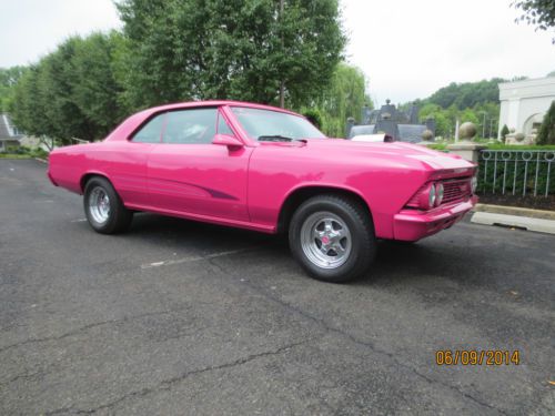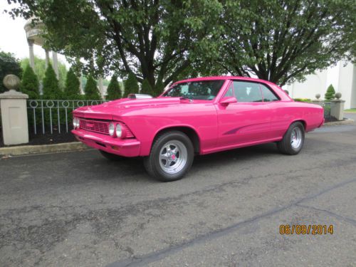 BEAUTIFUL 1966 CHEVELLE LAZER STRAIGHT BODY WITH FLAWLESS BASE CLEAR PAINT. NEAR PERFECT FOR A 20YR OLD PAINT JOB! FRESH 355 CHEVY W/SMALL CAM, AUTO TRANS WITH 3000 STALL SPEED, 373 POSI REAR. PANTHER PINK WITH HAND PAINTED STRIPES. NEW BLACK INTERIOR TURN HEADS IN THIS EYE CATCHER RUNS AND DRIVES PERFECT. A TRUE GO ANYWHERE SHOWCAR. LOOKING TO ATTRACT ATTENTION OR BRING THAT SPECIAL LOVED ONE TO THE CAR SHOWS?? THIS IS THE CAR TO MAKE IT HAPPEN! EMAIL ME FOR LINK TO YOUTUBE VIDEO. https://www.youtube.com/user/knightscollision/videos |