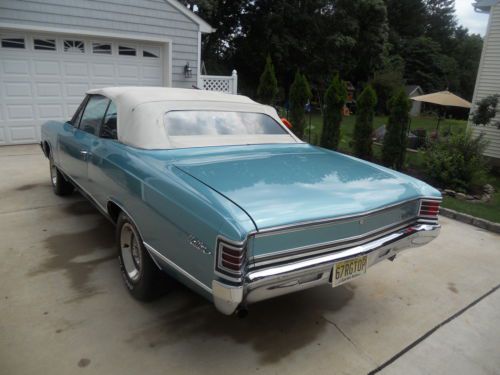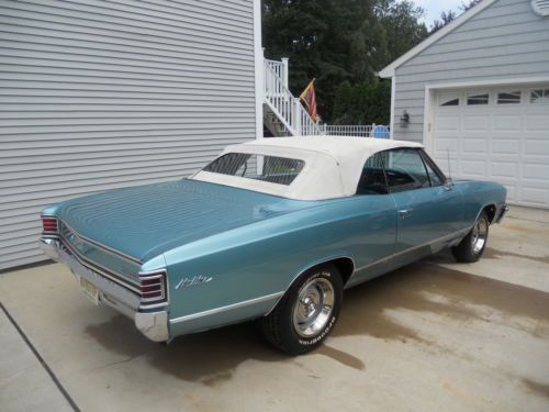 1967 Chevrolet Convertible. Original Malibu body style with SS hood. Slightly modified small block Chevy engine. Paint and interior done 15 years ago but shows nice. Chevy rally wheels with good tires. 3:73 12 bolt positraction rear with big block coil springs all the way around. I have owned car since 1982 and must sell due to relocation. Also for sale locally. Call Scott with any questions 973-219-5632.