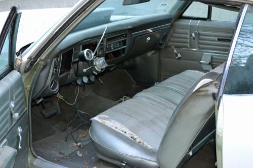 I purchased the car a few months back from a guy who owed me money for storage fee's. I can only relay to you what was relayed to me regarding history of this car. It has a 454 built 12 to 1 compression, steel crank, cam, roller rockers (hyd) demon 850, headers, turbo 400 stall converter shift kit, american racing wheels, new molding for front and back windows. This car runs and sounds like Nascar. Motor and transmission are all new and has not been on the road. It needs some work to get on the road; Front springs for a big block, brakes gone through, drive line. I have all parts for front of car minus bumper and inner fenders. Car has very little rust.