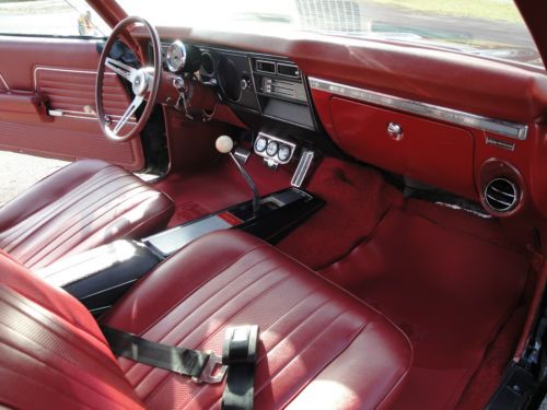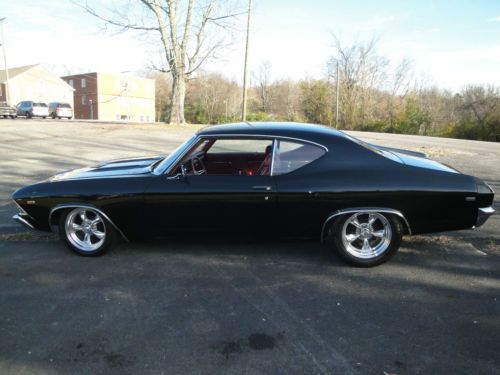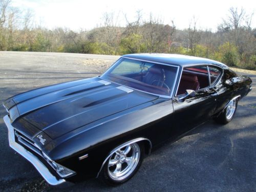 1969 chevelle with a killer stance.slick black paint/bright red interior. cd player with mp3 hookup.it has a healthy and detailed 350 small block with angle plug heads and a 4-speed trans.it has new 17-inch American torque thrust wheels/ and new nitto tires.it has QA1 adjustable coilovers on front with powder coated lowering springs in rear.the car also has tubular powder coated upper and lower control arms in the rear.this is a very nice car that drives great and gets plenty of attention.