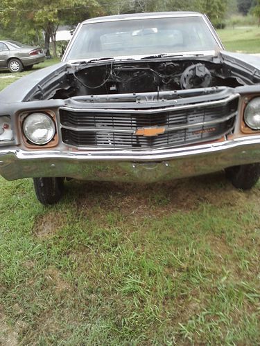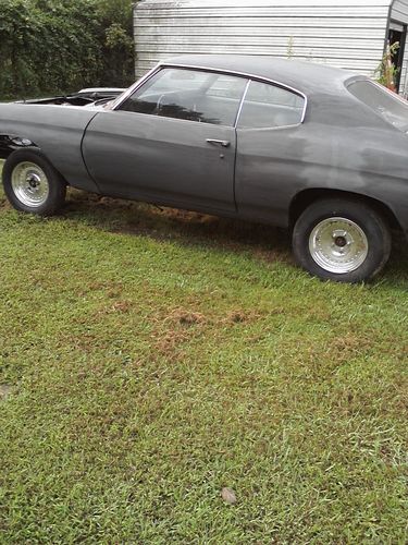 1971 chevelle never wreaked straight a little surface rust in trunk car was keeped inside till 2 years ago has a 355 sbc flat tops world products sportsman heads holley 750 carb 350 turbo trans nice drag wheels 29.5x10.5 slicks on back 3" front runners this car is not rusted out it has flowmaster ex the springs my shocks are a year old was going to make a street/drag car then had to have heart surgery so need to sale my grandmother bought this car new in 1970 at hall chevy in Cleveland, tn and keep in up need more info call 423-299-2891