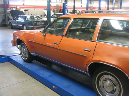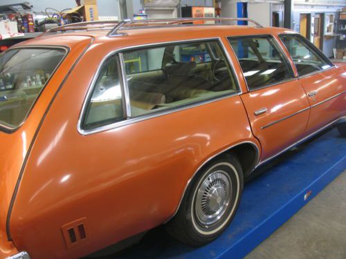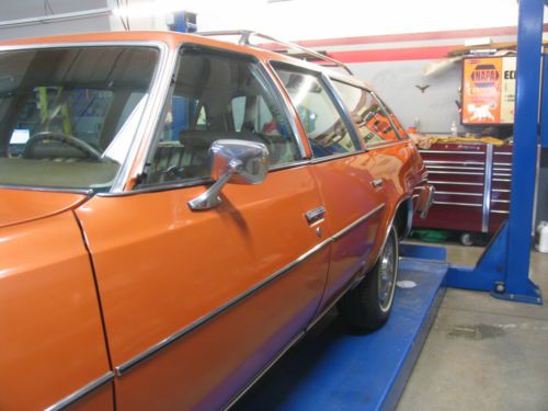 36 YEAR ONE OWNER 1977 MALIBU CLASSIC STATION WAGON. PURCHASED NEW IN WEST HOLLYWOOD CA IN JUNE OF 1977. I PURCHASED THIS VEHICLE FOR RESALE FROM THE NICE LADY WHO PURCHASED IT NEW. SHE INDICATED THE CAR HAD BEEN REPAINTED SOME YEARS BACK AND THE ORIGINAL ENGINE/TRANSMISSION WERE OVERHAULED SOME TIME IN THE PAST. IT IS EQUIPPED WITH A 350 V-8 AND AUTO TRANSMISSION, AIR CONDITIONING THAT WORKS GREAT, POWER WINDOWS WHICH ALL WORK AND TILT WHEEL. TIRES ARE NEAR NEW CONDITION, THE CAR RUNS AND DRIVES EXCELLENT. ALL LIGHTS WORK. THE PAINT LOOKS PRETTY GOOD WITH SOME LIGHT FADE AND A FEW CHIPS ETC HERE & THERE. BODY IS STRAIGHT WITH ONLY A FEW MINOR DINGS, THE WORST ONE IS ON THE RF FENDER (SEE PIC) I SEE SIGNS OF REPAIR UNDER THE SPARE TIRE WELL, LOOKS LIKE IT HAD WATER IN IT AT SOME TIME AND HAD THE BOTTOM REPLACED WITH NEW METAL. LOOKS FINE AND SOLID.