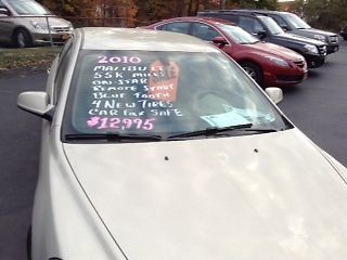 2010 CHEVY MALIBU 1LT. IT HAS BEEN TOTALLY SERVICED, WITH 4 NEW TIRES, NEW BRAKES, IT HAS THE BALANCE OF THE FACTORY WARRANTY OF 5YR/100,000 MILE ENGINE AND DRIVETRAIN WARRANTY. THAT WOULD GIVE YOU APPROXIMATELY 18 MONTHS AND 45,000 CAREFREE MILES. THE AUTO HAS A SIX SPEED TRANSMISSION AND IS FRONT WHEEL DRIVE WITH TRACTION CONTROL, AND GETS 33 MILES PER GALLON ON THE HWY. IT IS A ONE OWNER CAR WHICH I BOUGHT FROM THE TRADING DEALER. IT HAS A CLEAN CARFAX WITH NO PROBLEMS OR ISSUES. VERY CLEAN INSDE AND OUT. ONE HUB CAP HAS TOUCHED A CURB BUT NOT NOTICEABLE UNLESS POINTED OUT. A 2" DENT IN THE RIGHT FRONT FENDER A SCRAPE ON THE LEFT REAR BUMPER WHICH HAS BEEN TOUCHED UP WITH FACTORY PAINT. A SCRAPE ON THE RIGHT DOOR WHICH IS NOT NOTICEABLE UNLESS POINTED OUT. WE ARE A SMALL DEALER AND HAVE BEEN IN THE RETAIL AUTO BUSINESS FOR 40 YEARS AND WE PRICE OUR CARS BELOW MOST OTHER DEALERS. CHECK THE PRICEING ON E-BAY WITH CARS OF THE SAME QUALITY AND YOU WILL SEE. CHECK KBB.COM AND EDMONDS.COM. IF YOU HAVE ANY QUESTIONS ABOUT THIS VEHICLE, OR WOULD LIKE ANY OTHER DETAILS ABOUT OUR DEALERSHIP, FEEL FREE TO GIVE US A CALL AT 914-260-4611.