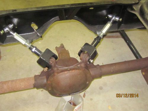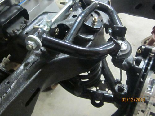 the chassis has been sand blasted and painted has front and rear umi tubular control arms upper and lower wilwood 4 caliper disk brakes eibach 1"drop springs front and rear qa1 rear adj. shocks rear end is stock housing wti new 4:11 gears new bearings new mini spool stock brakes and axles new brake valve for disk/disk brake lines and double hump cross member