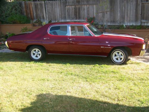 Great car my loss your gain ,new paint,new interior, great engine, runs strong, great cruiser 4dr chevy chevelle malibu. Sale of car is as is and buyer is responsible for all shipping costs. A 500 dollar deposit is required and all payments must be cleared before sale of the car is final. This is a great car thanks for looking.