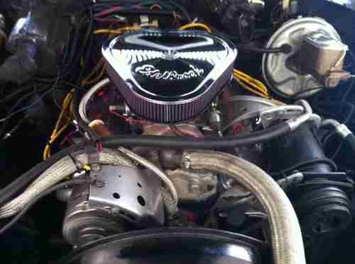 350v8 with a mild cam, all pulleys have been powder coated 350 trans with a 2200 stall converter .278 posi, rear end with highway gears needs .373 gears a/c, ps, pb, Motor and trans has around 15,000 mile sense over haul. all door seals, and trunk seal, window seals, have been replaced rear quarter panels have been replaced. Flow master exhaust with ceramic headers, New radiator, new heater core, new a/c compressor and conditioner, new springs, shocks, air shocks, Paint is about 9 years old new front and rear seats VERY LITTLE NEEDS DONE!!!!! new tires and so much more runs and drive nice big head turner.