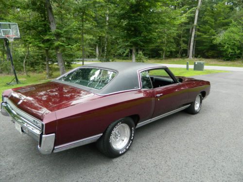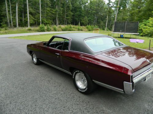Up for sale is my 1972 Chevy Monte Carlo. It has the original numbers matching 350 V8 w/ the original TH350 automatic transmission. Car has been partially restored. Everything works except for A/C(compressor). It has the original air conditioning and power steering. Entire top en of the engine has been replaced. New HEI distributor spark plug wires, headers to dual 3" Flowmaster exhaust, mild Comp Cam, timing chain, starter, and battery. Wheels are polished aluminum 15" Centerline with 275/60 in the rear and 225/70 in the front. The body is straight/solid and the paint is fresh, the color is Bloodstone Red. The bumpers and all exterior trim were replaced after the paint job, has been garage kept since. Many other things have been replaced also. The seat upholstery is still original and has a few holes in the front bench seat.