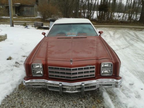 Your bidding on a 1977 Monte Carlo with 100135.00 miles has some rust on rear quarter panels. New battery, water pump, fuel pump, timing chain was replaced at 93000.00 miles, all belt and hose, new brakes, new alternator and tires are like new.