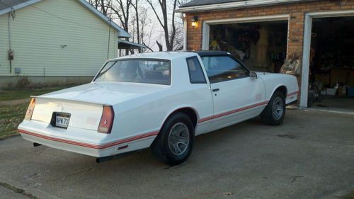 I bought this car as a project for my son and I to work on. The list of problems grew and he just wanted a driver, so I will be looking to sell. For those looking to make a 3rd generation Monte Carlo SS the way they want it, I have for sale a nice original Monte Carlo SS that needs an engine. The car does run, but engine is bad, knocking badly, starts, idles and runs like it did new, original 305 carburated . Was stored in the Illinois area for two years before I purchased it. It had issues, but I took it to a shop and had dents fixed and a few other spots fixed and had the car painted the original White for this model, and put the SS stripe kit on. This car has the original everything on it, the T-Tops are Creative Custom's. I had to replace the windshield, radiator, water pump, a couple of belts, new wires and plugs, and the reason motor was bad where it had sat, the oil return holes in the heads plugged up and the engine starved for oil, result, bad engine now. This is a White with Maroon interior car, console bucket seats. All options on car including under hood light and trunk opener and light. The radio has been replace with an after market Pioneer, that plays. The transmission shifts great as it should and I believe it to have been recently overhauled. I bought this car as a project for my son, but it just keeps having issues I can't fix anymore, getting older, and no place and equipment to do the work. I worked in auto dealers and garages for awhile. These car always needed a 350 engine or larger in it to make it the Muscle car Chevrolet should have built, now is the opportunity and chance to make it one. If you have an engine, I have the car. I am only trying to recoup part of my expenses on this knowing I'll never get what I've put in it. Please don't bid unless you are serious, and like I said, it needs an engine so you will have to make arrangement to pick it up when funds are paid in full. I have the clear title in hand, no, I can sell this myself thank you, and if I don't, I'll get around to making it into my ride. I live in Ravenswood WV 26164, so you can figure the distance to travel. I also reserve the right to remove listing if sold locally. Last of the great Monte Carlos that were considered muscle cars.