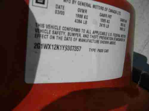 Engine:3.8L 3800CC 231Cu. In. V6 GAS OHV Naturally Aspirated