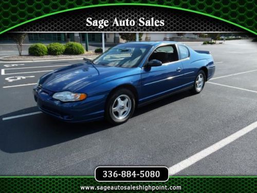 Awesome car!! Fantastic condition inside and out. Hot color scheme! Two tone cloth interior just adds to the party. Giant sunroof makes those midnight drives under the southern sky more beautiful. Call Zak today. 888-781-8085. We will get you rolling at Sage Auto Sales. BAD CREDIT OK. Thanks for stopping by and looking at the Monte Carlo. Have a great day. Visit Sage Auto Sales online at www.sageautosaleshighpoint.com to see more pictures of this vehicle or call us at 888-781-8085 today to schedule your test drive. At Sage Auto Sales, we always keep your needs in mind! We strive to have a selection of vehicles in stock that will fit almost any budget--from Corvettes to Minivans, or SUV's to Compacts. You can always count on Sage Auto Sales to have what you need! Please call us @ 888-781-8085 and we will be more than happy to answer any questions.