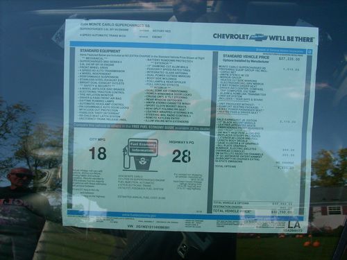 04 MONTE CARLO SS, DALE EARNHARDT JR. EDTION. 851 MILES. 1 OWNER, PA CAR, NEVER SMOKED IN. 3800 V6/SUPERCHARGED. LOADED WITH OPTIONS,COLOR RED WITH BLACK INTERIOR. MUST SEE TO APPRECIATE.COST NEW IN 2004 $32,000. CALL 315-436-0999 ANYTIME. $500 Deposit 24hrs after auction. Balance due in 3 days by paypal or bank wire transfer. Buyer is responsible for pickup of the vehicle.