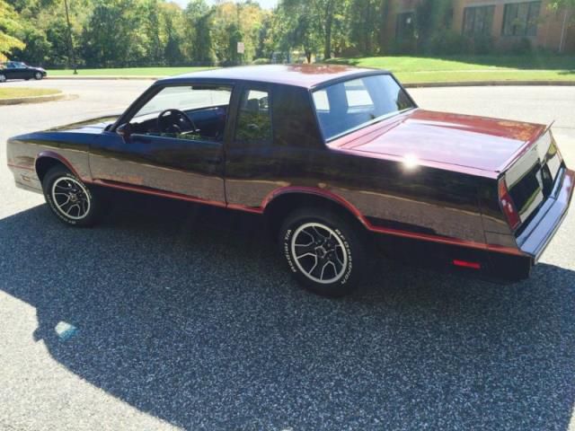 Monte Carlo SS 1985, all original with only 13k miles. Maroon paint and interior. I am the second owner. It has the Monte Carlo SS package with automatic transmission and power windows and door locks. Extremely clean and road ready. You do not have to spend more money on this car as you would buying one that has been untouched. It has already been done. All fluids changed and new radiator, new belts, and new hoses plus original tires and rims and an extra set of OEM MCSS N90 wheels professionally redone with custom grey gunmetal color and BF Goodrich tires which cost $2000. The air conditioning works with the old R12 refrigerant. I had a tech add R12 to it last September and it is still holding. The headliner and the visor fabric has been replaced. Car has the undercoating which was installed at the dealership upon purchase. There is one tiny almost a dent between the driver side rear wheel and the drivers side back window.