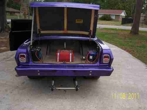 Disk brakes on the front. The car runs 7.0's in the 1/8th mile. It has won several races. Body is very clean and straight. Factory dash.