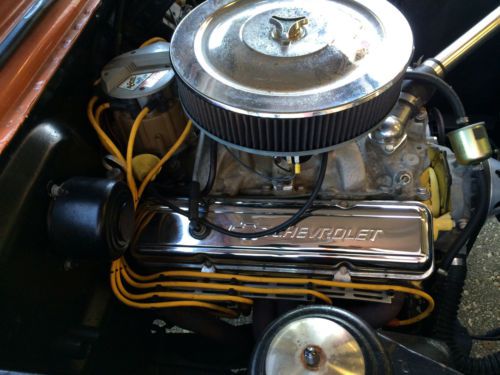 This car has a good paint job with some rust on fender above passenger tire and a few other small places , Newer 327 engine with Holley carb, automatic trans, new carpet, door panels and two racing seat and seat belts, excellent interior,new exhaust , battery is in the trunk, excellent tires. rear air shocks