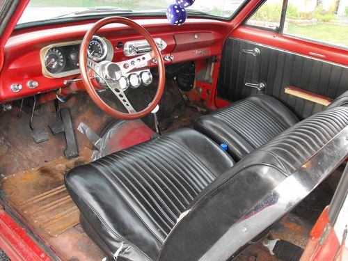301 Stroker motor set back several inches, freshly rebuilt Muncie M21 4 speed with a scattershield, 10 bolt posi rear end with slapper bar traction bars. Sraight axle. New Ansen Sprint rear wheels & Rocket Launcher front wheels. 4 New tires . 64 Impala bucket seats. It has a rear seat (very hard to find). Old Sun Tach. New trunk floor installed. All brake lines & gas lines replaced. Newer gas tank.