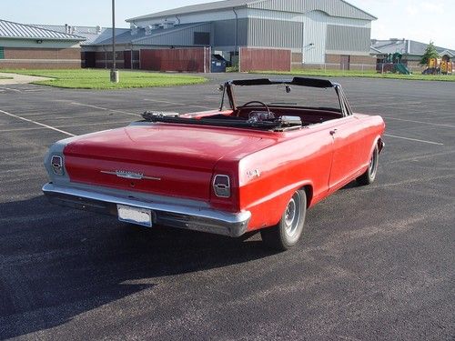 cool 63 nova convertible has a mid 70's 250 straight 6 and a th350 trans. five lug conversion is DONE !! has a posi 3.08 rear and new right stuff power disc brakes with all new brake line and fuel line . garden variety rallies and good tires , i have disc brake centers or the taxi cab centers ...your choice . front end has been upgraded with a church boys racing lower tubular control arms and rack and pinion steering plus 1 1/8" sway bar. new shocks on all four corners . the floor pan has been replaced (last winter) and the inner rockers have been repaired and are solid as a rock , i also added my own sub frame connectors. i used monsta liner (bed liner) on the underneath new floor and laid down fatmat sound deadner in the interior .new heater core and a American Auto Wire wiring harness. there is new carpet (black ,still in the box ) and new sill moldings (also still in the box) i converted the column shift to floor shift and added SS gauges with a tach and a SS console . this is NOT an original SS car , i just added a few SS parts ......let me say that again ...it is NOT an original SS car. i've installed corvair buckets with super cheap covers and i have the original bench seat . i have no idea how many miles are on the engine , it does rattle a bit and has a minor rod knock at start up that clears after a few seconds . i replaced the rochester mono jet with a weber 32/36. runs good and has a ton of low end torque. the body will need some attention in the future if you decide to paint it . the driver side rocker has some rust thru (i have a new rocker) and the passenger side lower rear quarter has some rust thru . some of the body work by a previous owner could be considered sketchy (most likely some bondo ) . the only outer body work i've done is a hagan fuel filler door. there is NO TOP , the frame is there and works , but no fabric . i just check the radar before a long drive ! restore it or drive as is , it's a fun car to cruise in. at auction end the winning bidder will be expected to send a NON REFUNDABLE 500.00 deposit via paypal within 48 hours of auction end and the remainder CASH at time of pickup . the winning bidder will be responsible for shipping .