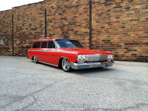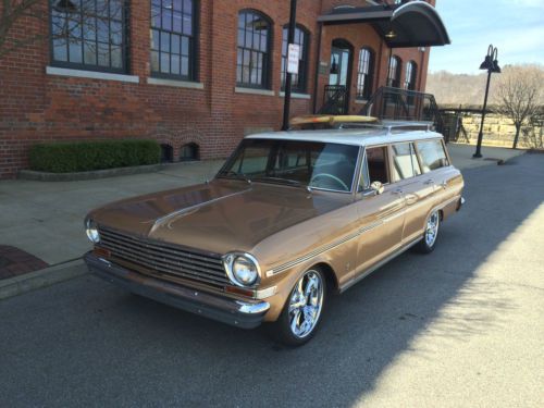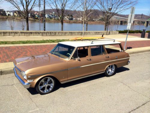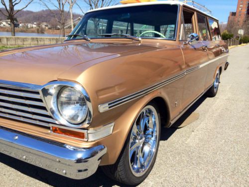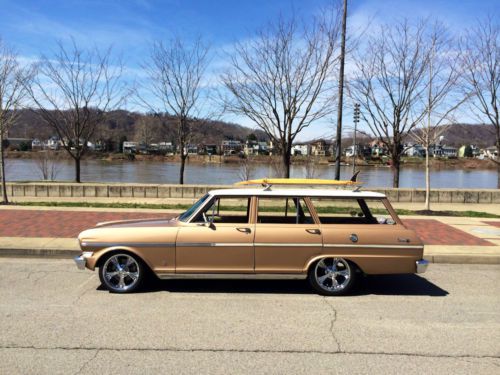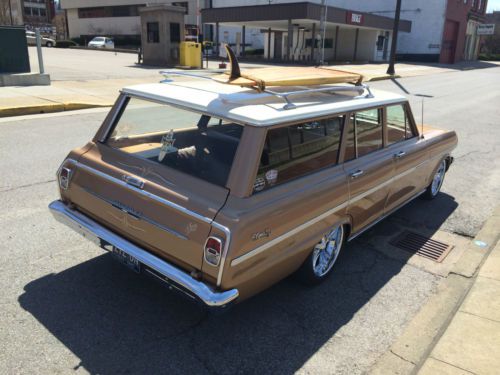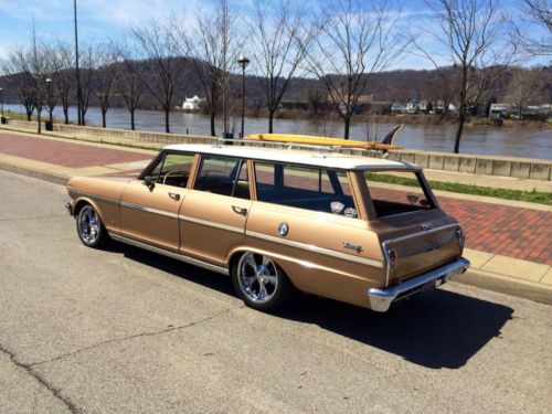 1963 CHEVY NOVA WAGON LS RESTOMOD LSX 5.3/4L65E TRANS DYNO TUNED 303RWHP FUN FAST RELIABLE THIS CAR IS A TRUE HEAD TURNER EVERYWHERE IT GOES. RUNS GREAT WITH OVER 20 MPG. CRUISES DOWN THE HIGHWAY AT 1800RPM AT 70MPH. WOULD NOT THINK TWICE ABOUT DRIVING CROSS COUNTRY. PERFECT CAR FOR A HOTROD POWER TOUR. NO EXPENSE SPARED ON THE LS SWAP OVER 35K INVESTED. MY FEEDBACK SAYS IT ALL CAR IS COMING FROM A PERSONAL CAR COLLECTION. ANY QUESTIONS JUST ASK. THANK YOU INTERIOR ALL NEW SADDLE INTERIOR FROM CALIFORNIA AUTO APOLSTERY, DAKOTA DIGITAL DHX DASH, LOKAR BILLET GAS PEDAL AND FLOOR MOUNT SHIFTER EXTERIOR PAINTED ORIGINAL COLOR, PAINT IS FAIR, SHOWS SOME PATINA, TRIM HAS SOME DINGS, NOT A PERFECT SHOW CAR, VERY CLEAN AND PRESENTABLE, UNDERBODY IS PAINTED AND SMOOTH, SOLID CALI CAR CHASSIS CHURCH BOYS RACING FRONT SUBFRAME, TUBULAR UPPER AND LOWER CONTROL ARMS CPP MASTER CYLYNDER WITH 2 INCH DROP SPINDLES CHURCH BOYS RACING MID LENTH STAINLESS HEADERS, TRANS CROSSMEMBER AND MOTOR MOUNTS LARGE F-BODY CONVERSION FRONT BRAKES TANKS TANK WITH INSUMP 255 WALPRO PUMP ALL STAINLESS BRAIDED LINES GRIFFIN LS ALUMINUM RADIATOR 17 INCH BOYD CODDINGTON WHEELS OTHER CARS SHOWN ARE ALSO FOR SALE 1962 IMPALA WAGON LS1 - VINTAGE AIR - RIDE TECH AIR RIDE 1969 C10 SHORTBED - STOCK - 22 INCH STEELIES |