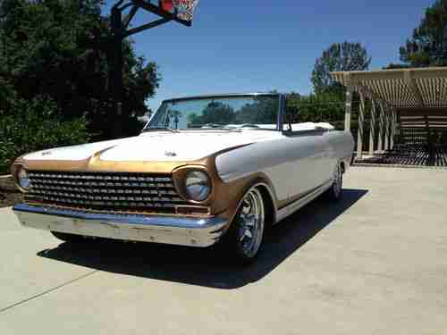 This is a great 1963 Nova that is in good condition all around! It has a 283 V8 with Triple Carburetors, a 3-speed automatic floor shift, 17" American Racing Torq-Thrust II wheel with 205/40 17 Hankook in front and 215/40 17 in the rear(less than 3,000 miles on them). It has a completely rebuilt rear end, front disc brakes with a CPP Mini sub frame Kit. This handles excellent and drives great in the city or on the freeway doing 80 mph with the sub frame kit. Car also has seat belts, dyno-mat floor installation(keep road noise to a minimum). Convertible top is in great condition. Paint is little older and could redone if you want a show car, as you can see by the pictures the paint looks great form a little distance, but there are some chips and nicks in the paint as well as a few crack which you can see in some of the attached pictures. All in all this is a great car that is fun to drive, mechanically rock solid, and easy to drive. Feel free to reach out with any questions and the car can be seen if you live in the local area.