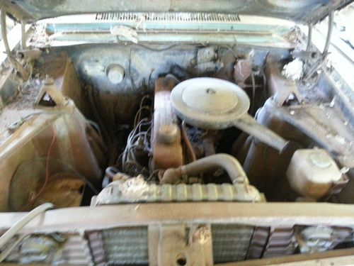100% complete car. Nothing molested or modified. Just as it came from GM. Stored under farm shed 30 +/- years. Was running, engine had recently been rebuilt. Trans worked fine. Needs tires, battery, good clean up. Keep as survivor car or great candidate for restoration. You won't have to look for anything. Very solid, no rust, just very dirty.